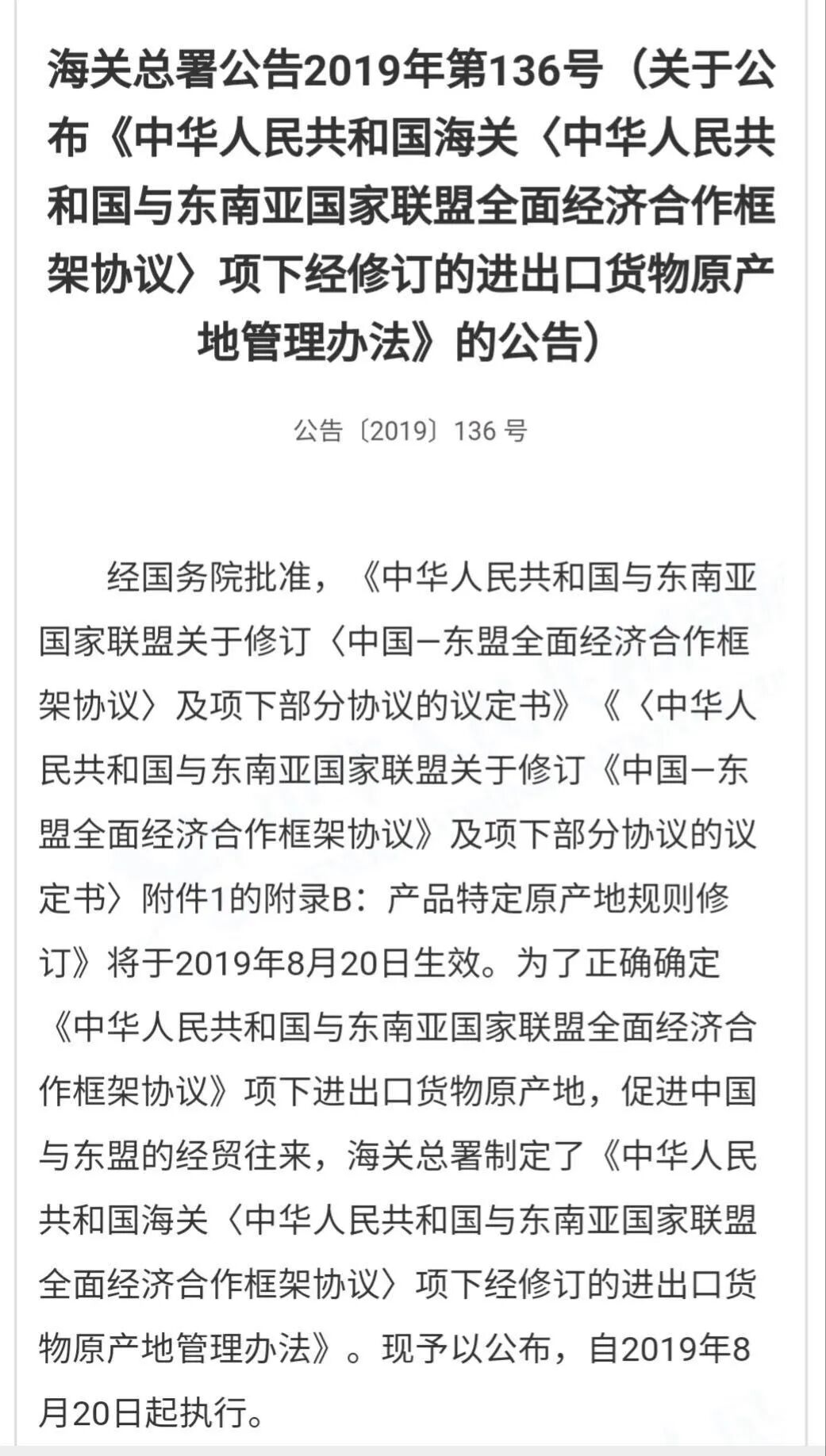A海关总署网站2019年第136号公告。